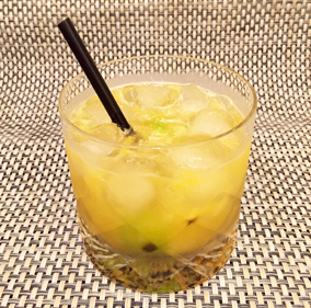 4. Servir sin colar en un vaso corto o de whisky y sumar sorbetes.